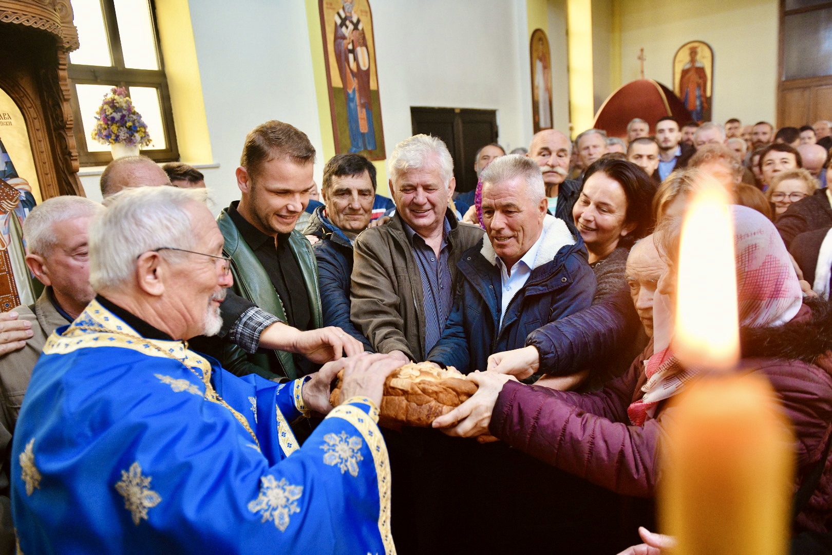 Након Свете архијерејске литургије, услиједило је освештање славског колача и жита, као и опход око Храма.