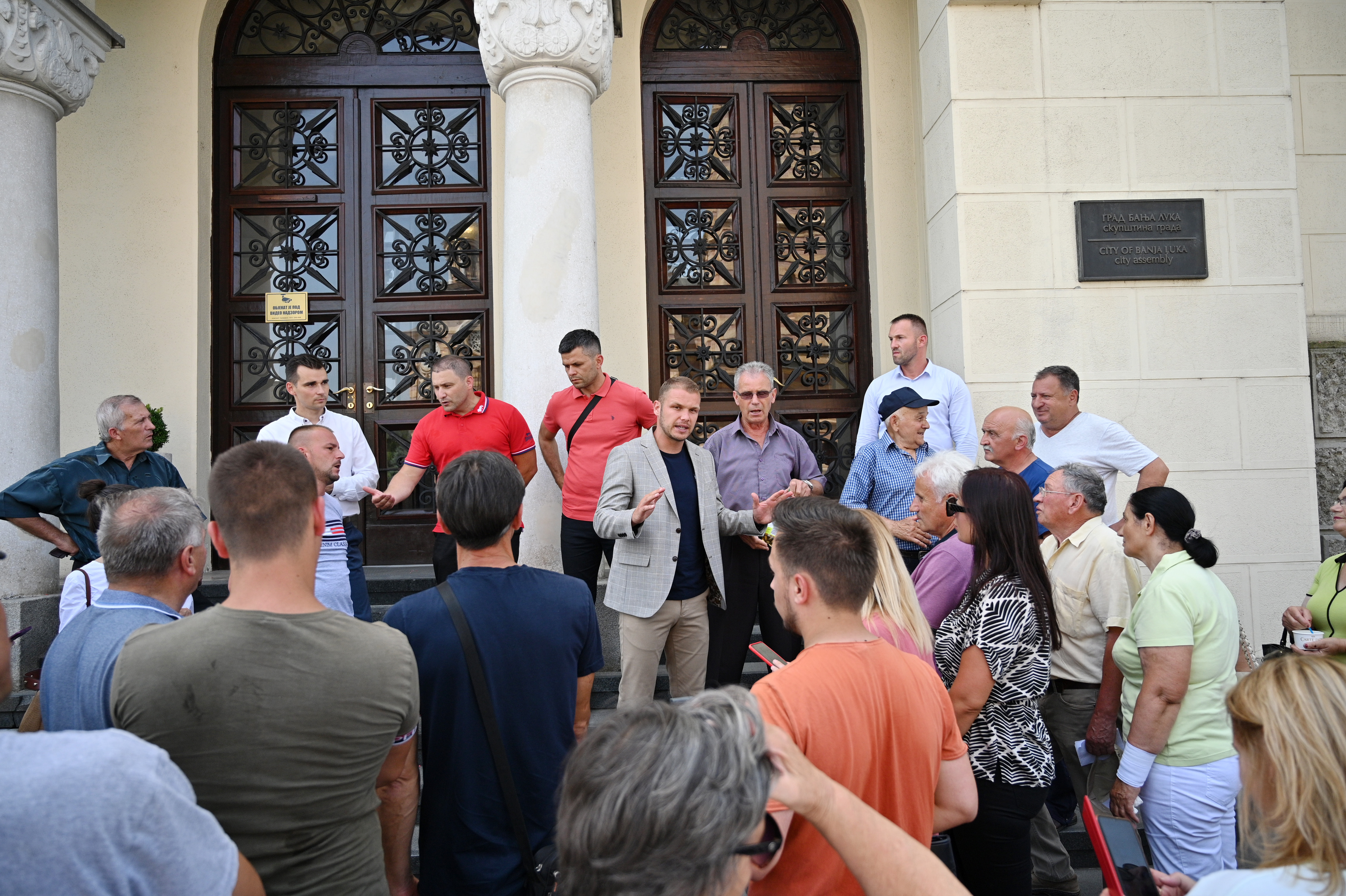 Градоначелник Драшко Станивуковић изашао је испред Градске управе, како би разговарао са мјештанима Доњих Кола, који су се окупили како би изразили незадовољство због проблема са несташицом воде.