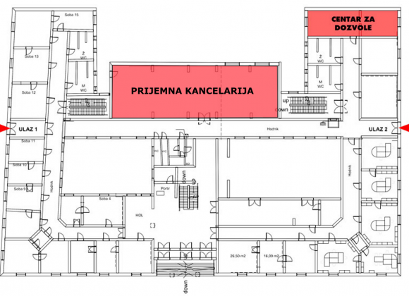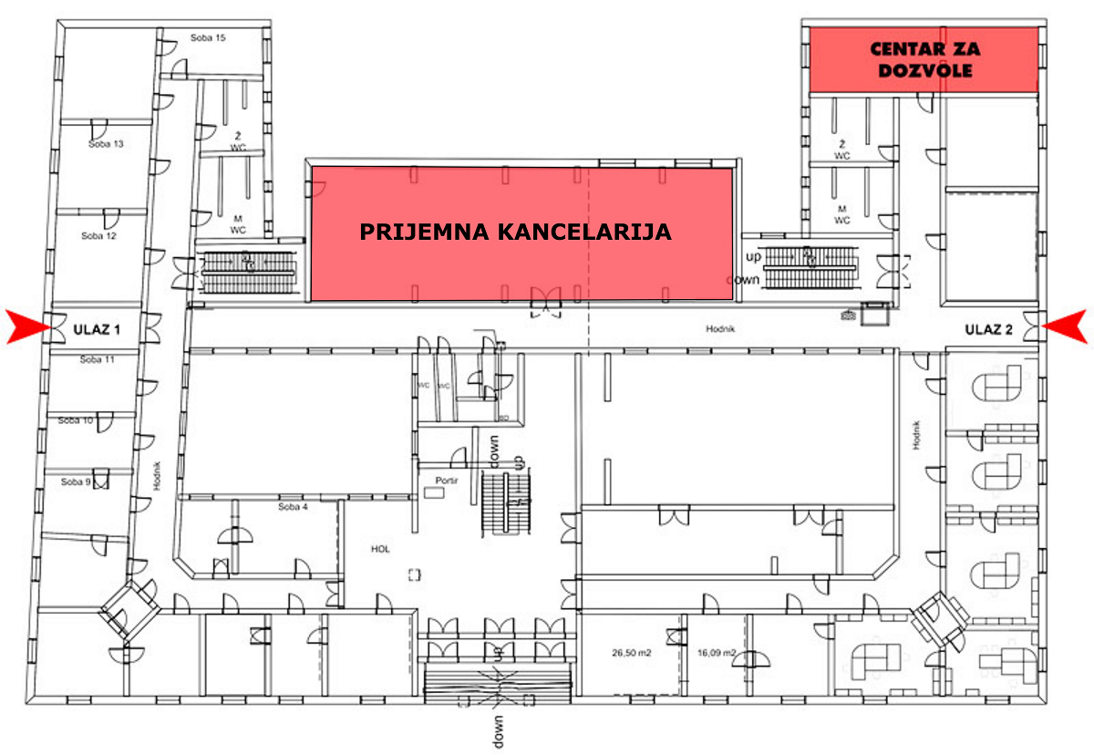 Центар за дозволе Одјељења за просторно уређење (Пријемна канцеларија) налази се у приземној етажи зграде Градске управе, канцеларија број 19.