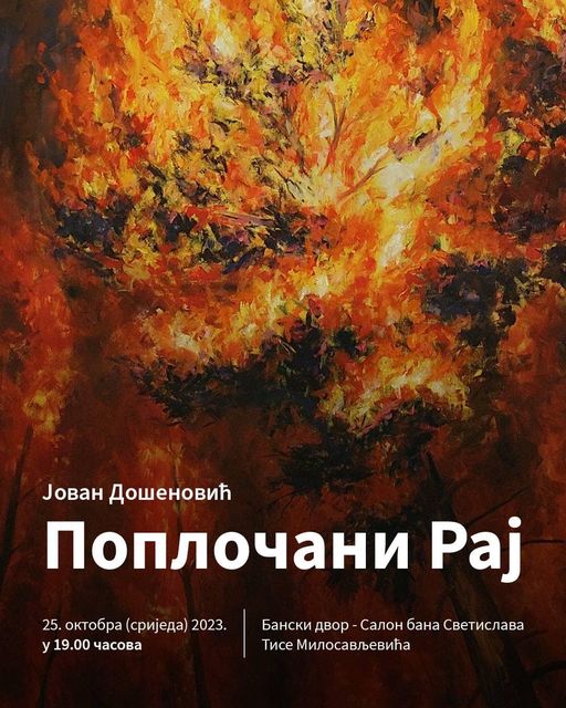 У Културном центру Бански двор у Салону бана Светислава Тисе Милосављевића, у сриједу 25. октобра у 19.00 часова биће отворена изложба „Поплочани рај“ академског сликара Јована Дошеновића.