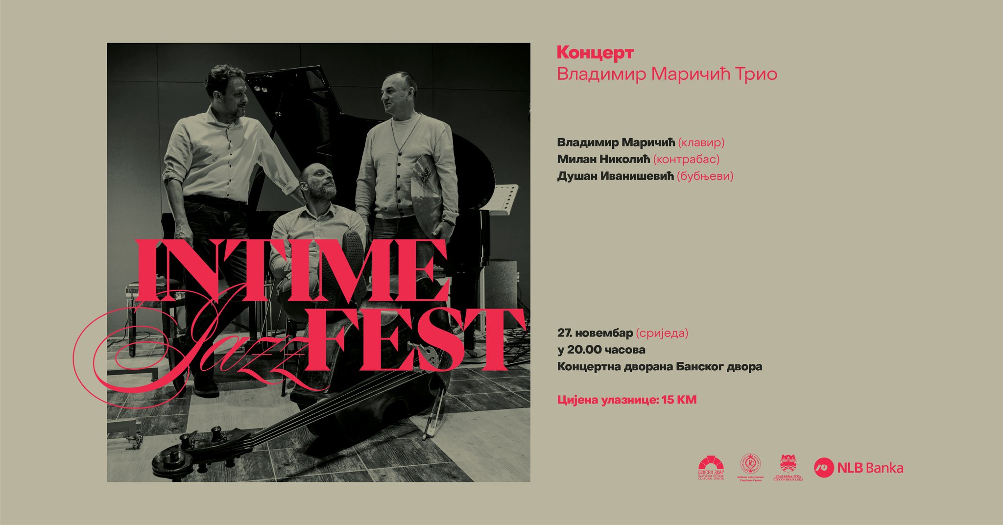 Концерт реномираног Владимир Маричић Трија у оквиру којег наступају Владимир Маричић (клавир) – Милан Николић (контрабас) – Душан Иванишевић (бубњеви) биће одржан треће вечери 7. фестивала џез муѕике Intimejazz festa“ у сриједу, 27. новембра у 20.00 часова.
