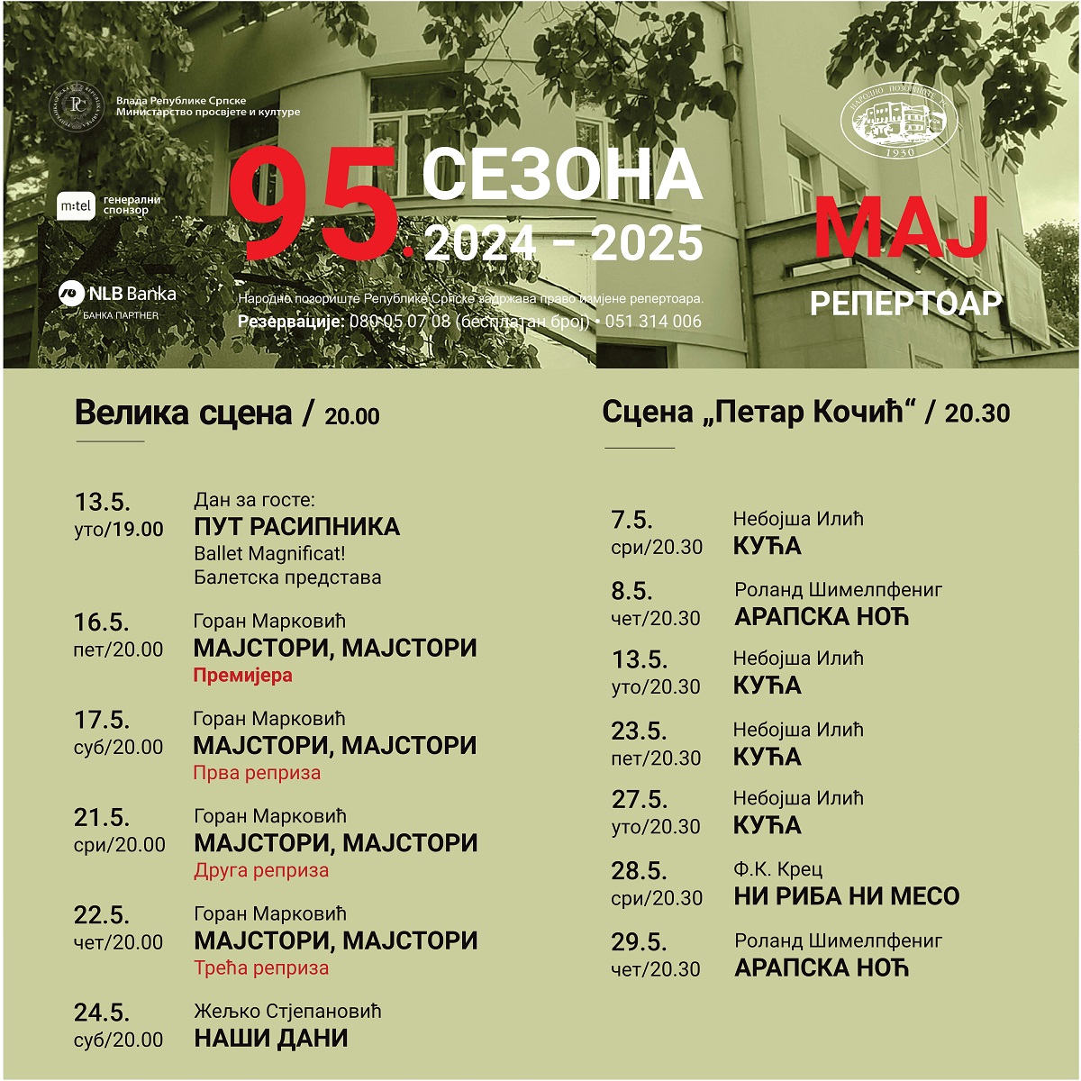 Maj donosi izuzetno bogat repertoar u Narodnom pozorištu Republike Srpske, na zadovoljstvo mnogobrojnih ljubitelja pozorišta.