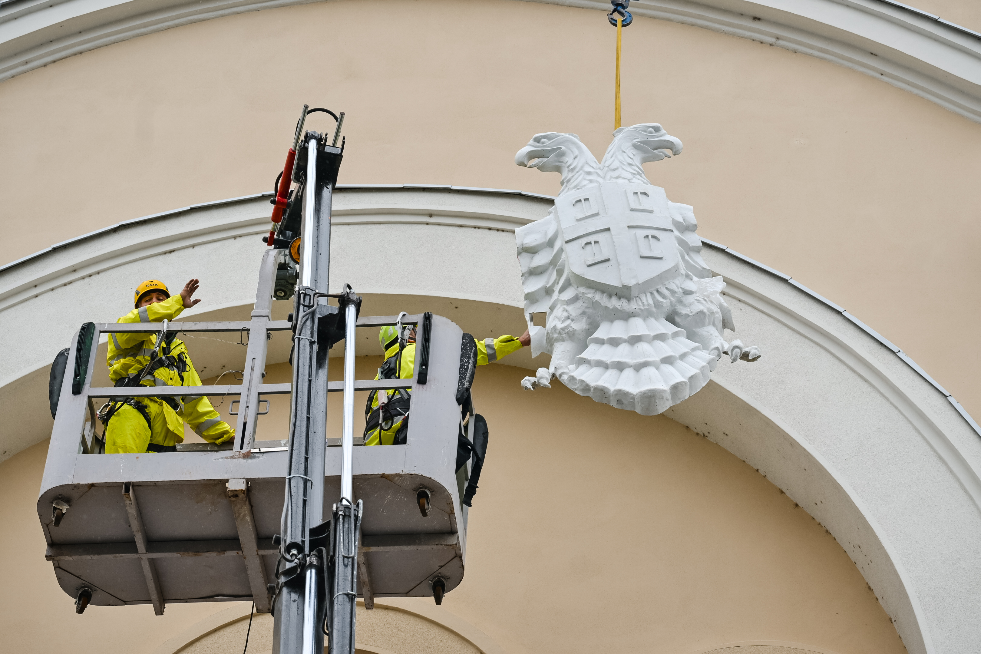 Двоглави орао је након 83. године враћен на зграду Банског двора, а оно што је посебно јесте што је то учињено баш данас на Дан српског јединства, слободе и националне заставе.