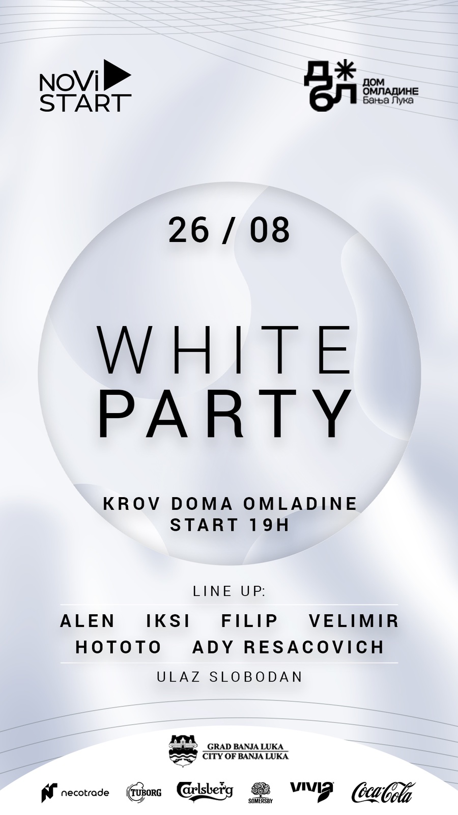 Дружење на крову Дома омладине под назвиом „White Party“ биће организовано и ове године, и то у суботу, 26. августа са почетком од 19.00 часова, а организатори најављују сјајну забаву за све присутне.