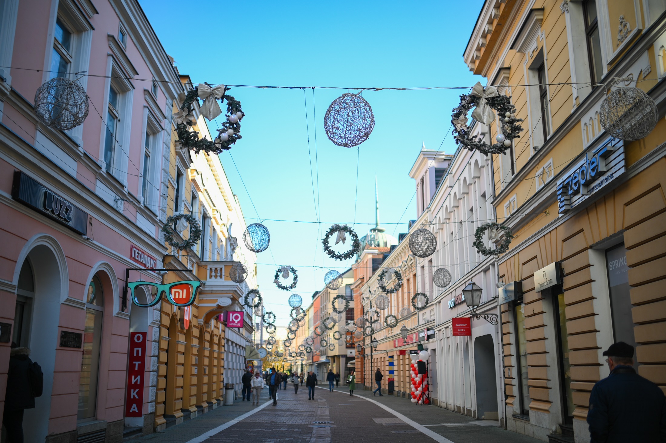 Наиме, Господска улица, коју красе гирланде и сњежни новогодишњи вијенци – украшени плишаним машнама у комбинацији са свијетлећим куглама већ поприма новогодишњи изглед.