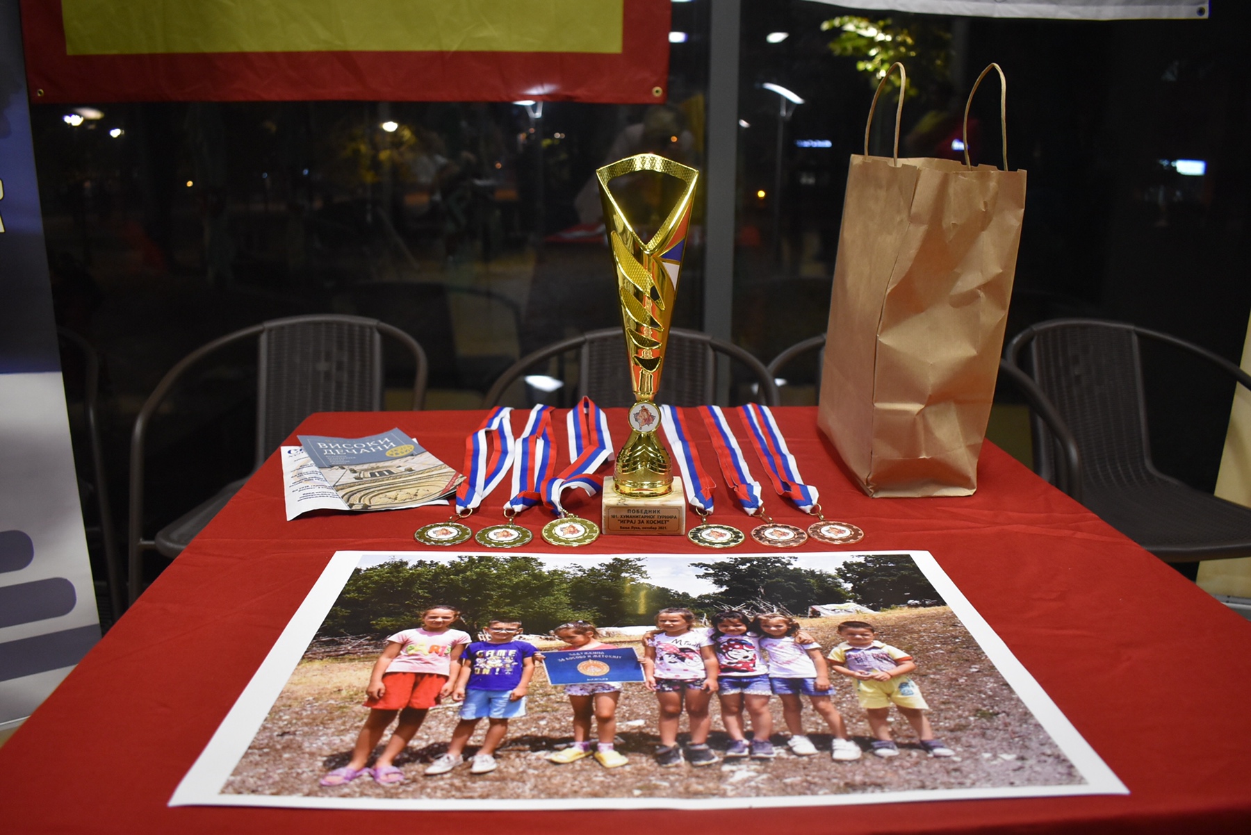 Србско сабрање „Баштионик“, заједно са Хуманитарном организацијом „Сви за Kосмет“ из Београда, синоћ је у „Стакленцу“ организовало хуманитарни турнир у стоном фудбалу, а сакупљена средства намијењена су за куповину зимске обуће дјеци са Kосова и Метохије.