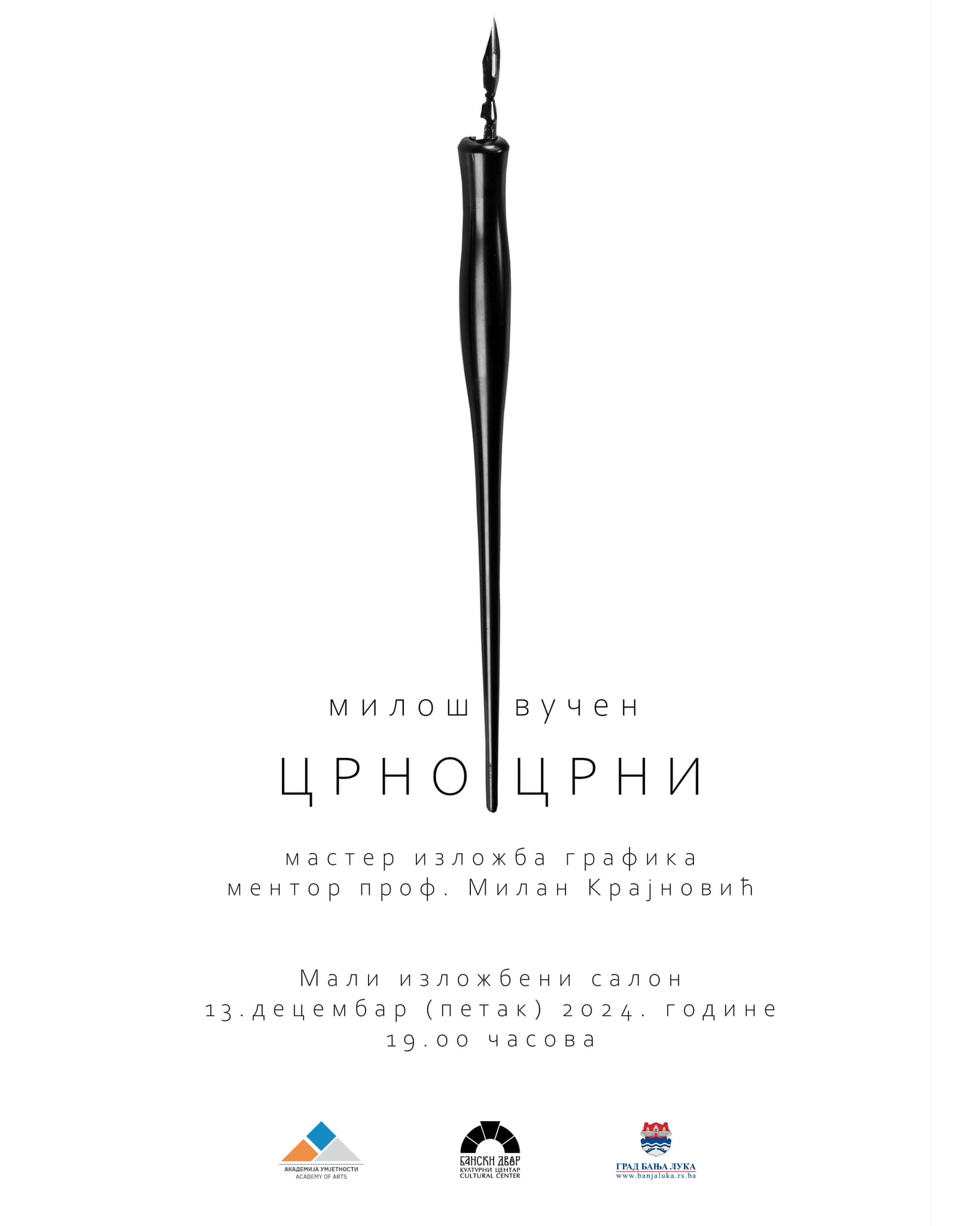 Отварање изложбе под називом „Црно црни“ аутора Милоша Вучена биће одржано 13. децембра у 19.00 часова у Малом изложбеном салону Банског двора.