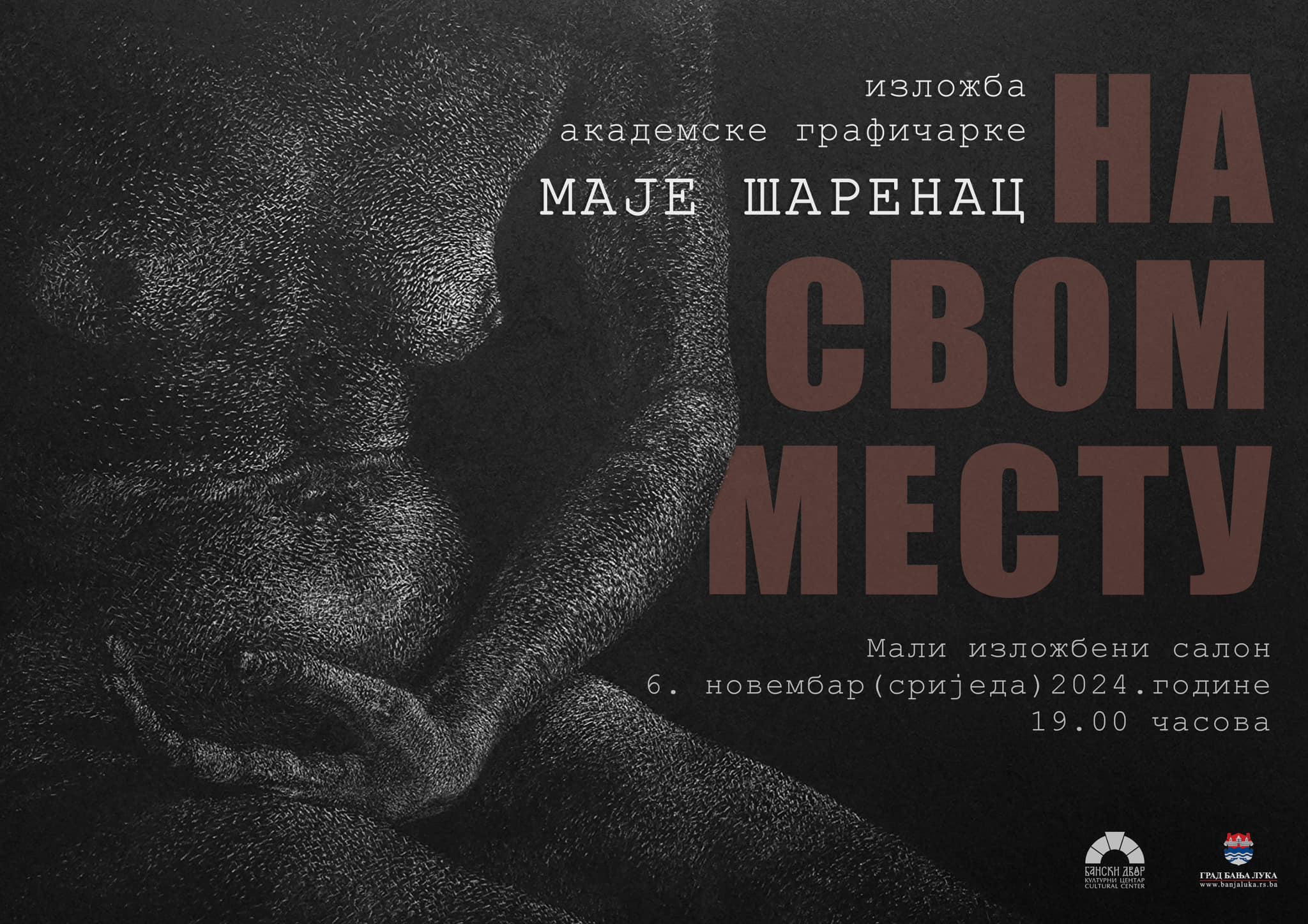 У Великом изложбеном салону Културног центра Бански двор у сриједу, 6. новембра са почетком у 19.00 часова биће отворена изложба „На свом месту“ академске графичарке Маје Шаренац, која тренутно живи и ради у Дубаију.