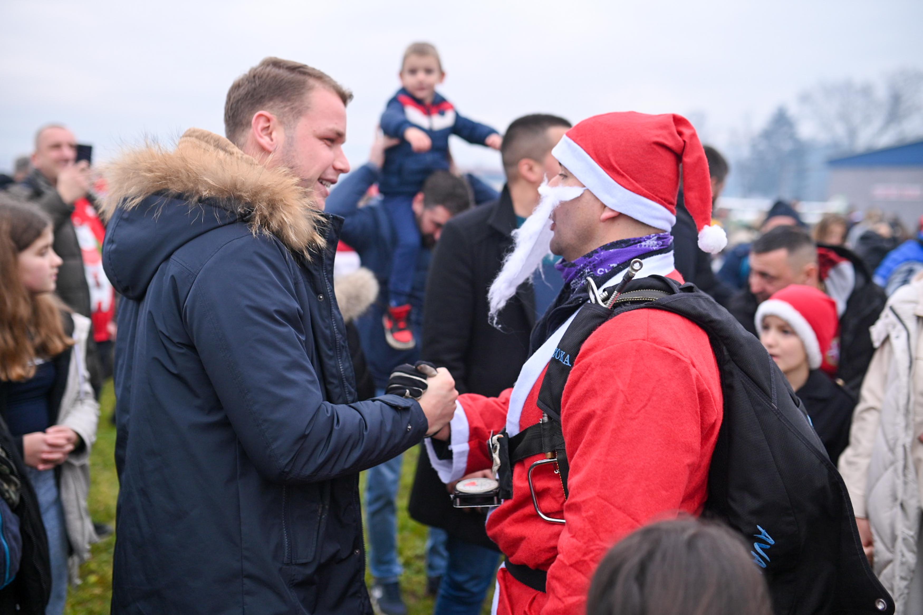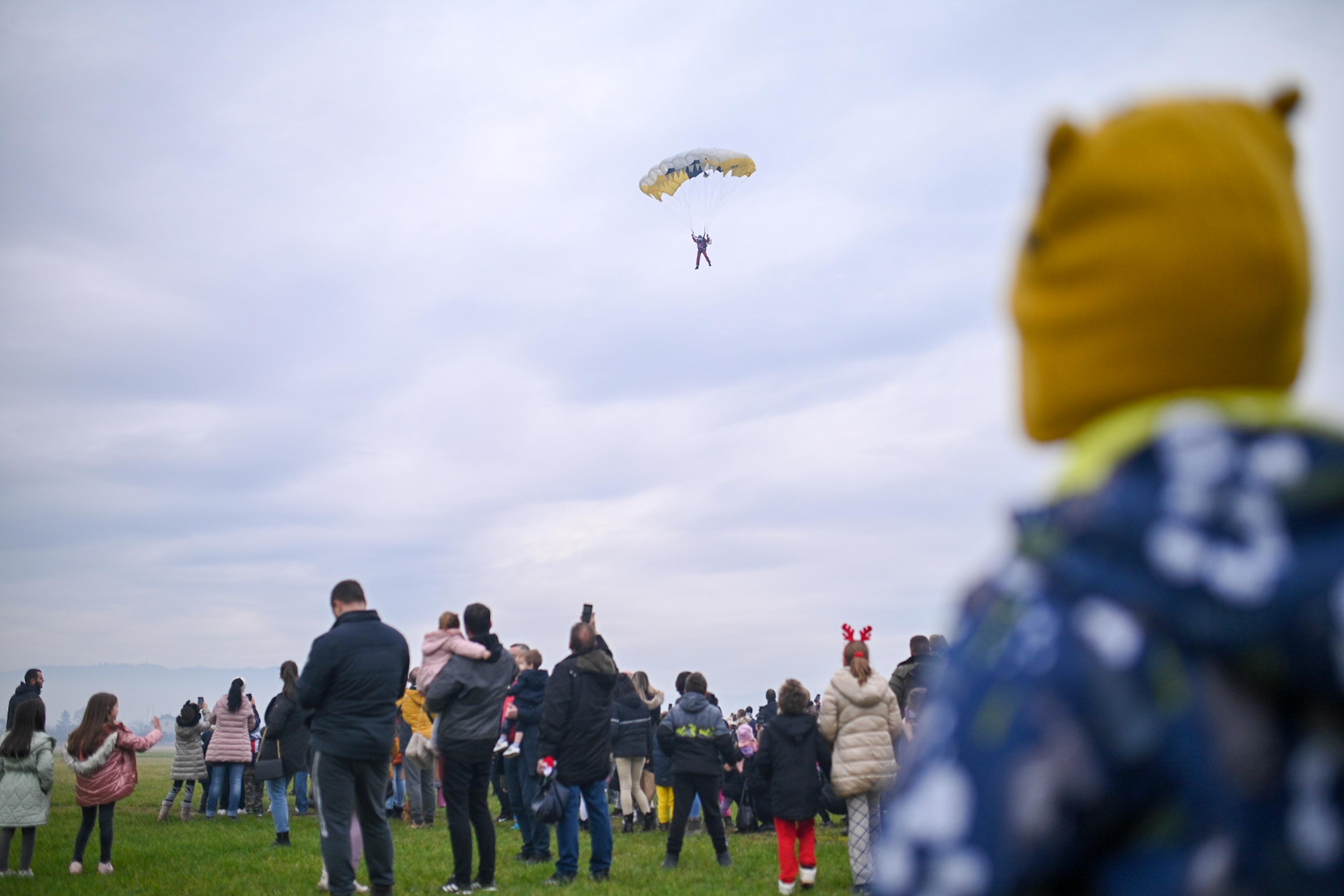 Nekoliko stotina mališana uživalo je u novogodišnjem spektaklu koji su priredili padobranci Vazduhoplovnog kluba „Skydive“.