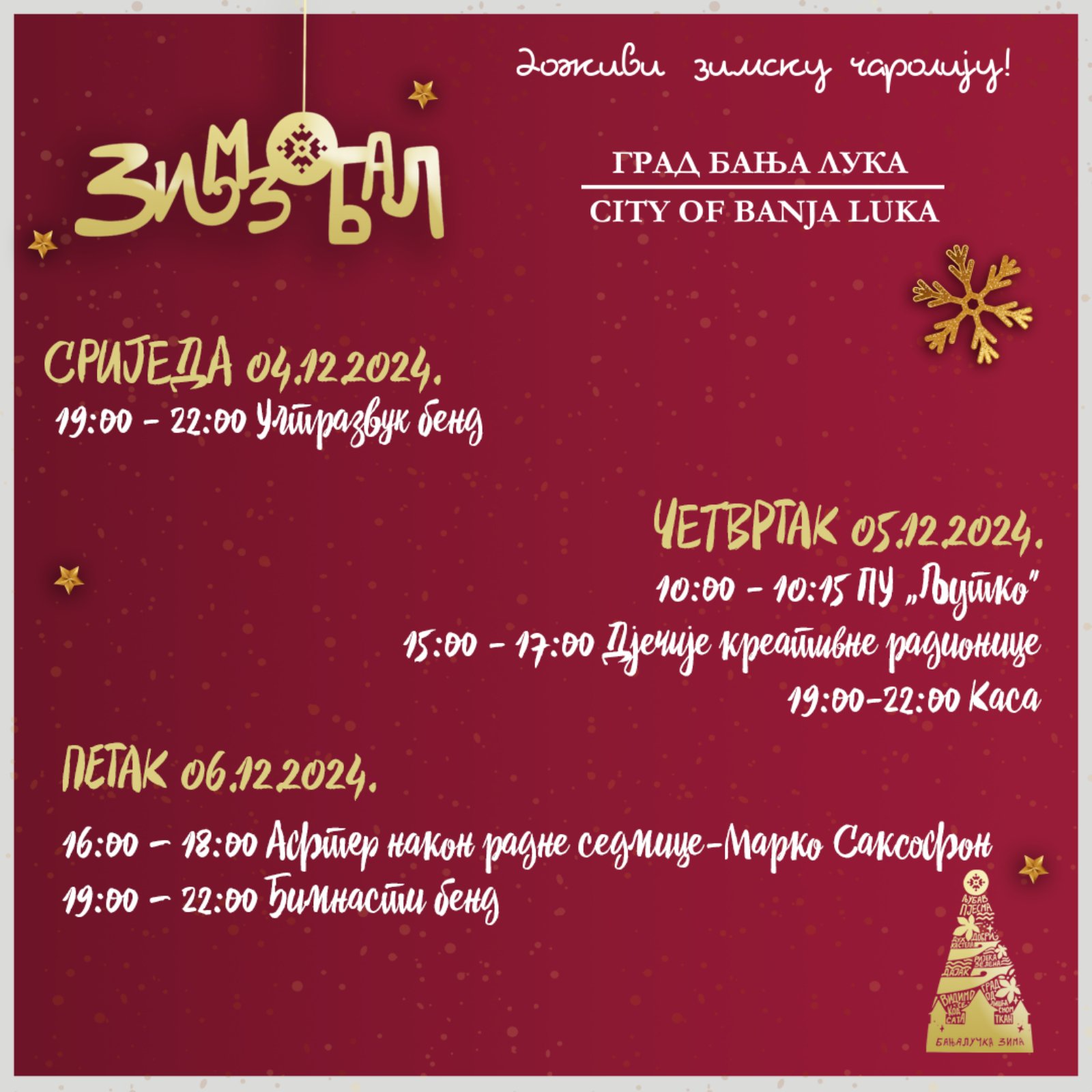 Сриједа и четвртак, односно 4. и 5. децембар резервисани су за занимљиву „Бизнис трку“, те наступе Марка Саксофона и Ултразвук бенда, те дјечије креативне радионице.