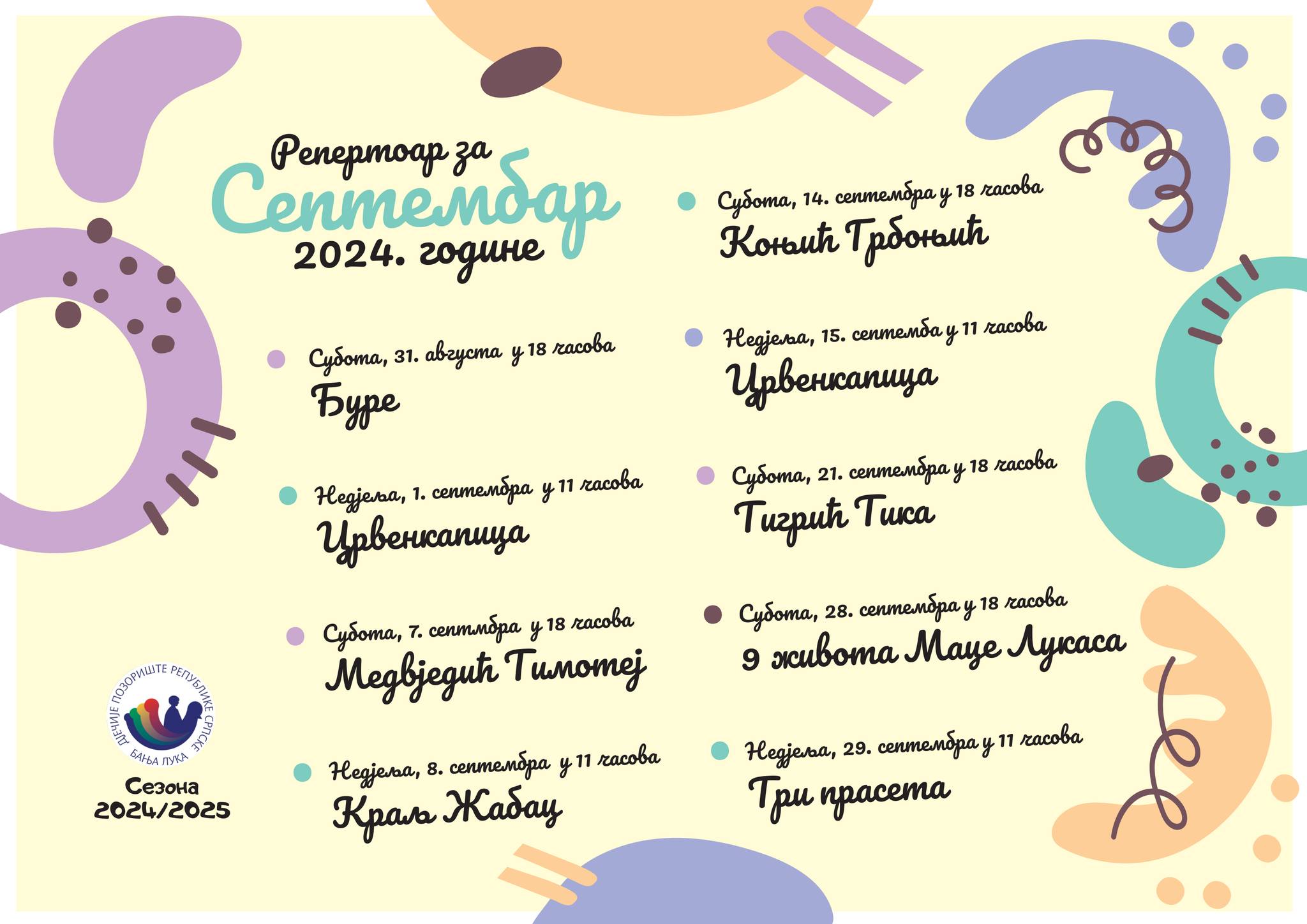 Репертоар Дјечијег позоришта погледајте овдје.