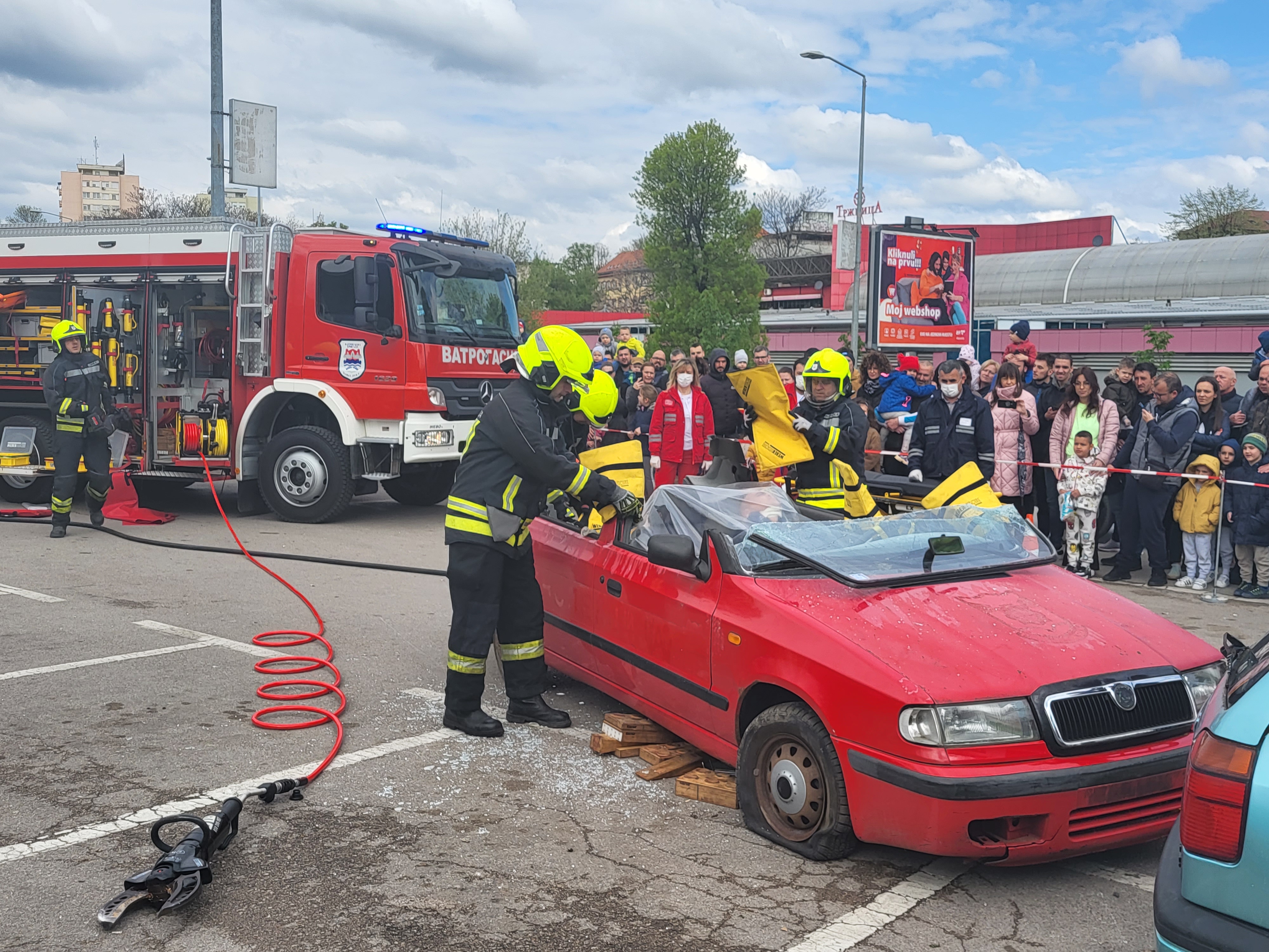 Pripadnici profesionalne teritorijalno-vatrogasne brigade pokazali su sugrađanima vježbu spasavanja iz vozila i gašenja požara na otvorenom prostoru.