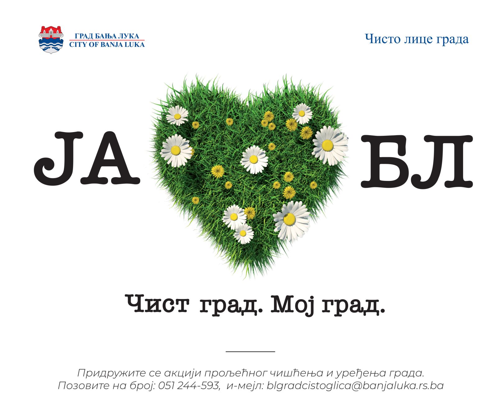 За све суграђане који желе да укажу на потребну интервенцију градских служби у оквиру активности прољећног уређења, као и за добијање више информација о могућем учешћу у акцији „Чисто лице града“ можете се обратити на телефон: 051/244-593 или путем електоронске поште: blgradcistoglica@banjaluka.rs.ba