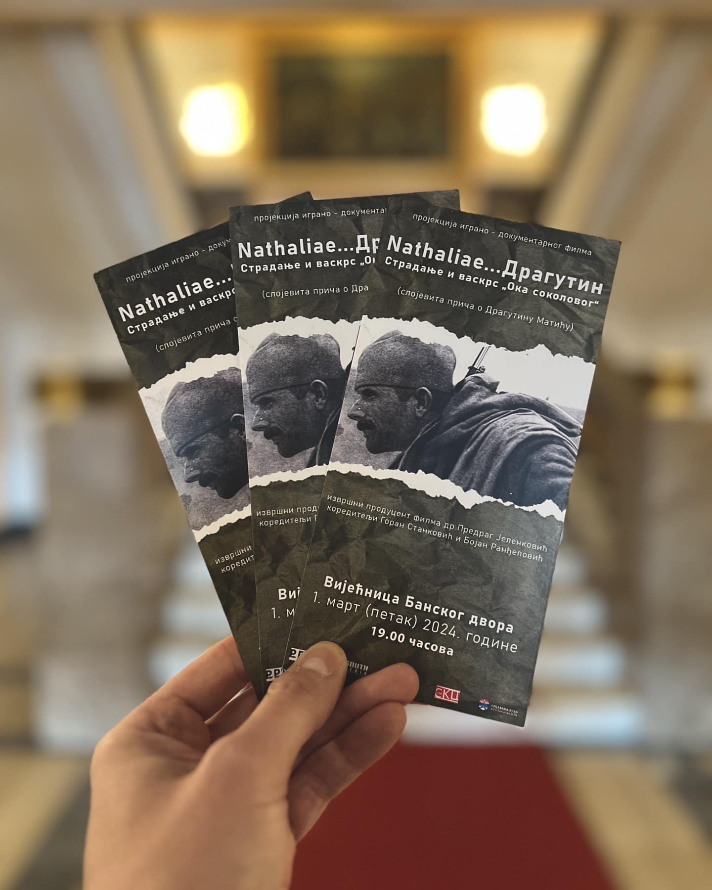 Пројекција играно – документарног филма „Nathaliae…Драгутин“- Страдање и васкрс „Ока соколовог“ биће одржана 1. марта 2024. године у 19.00 часова у Вијећници Банског двора.