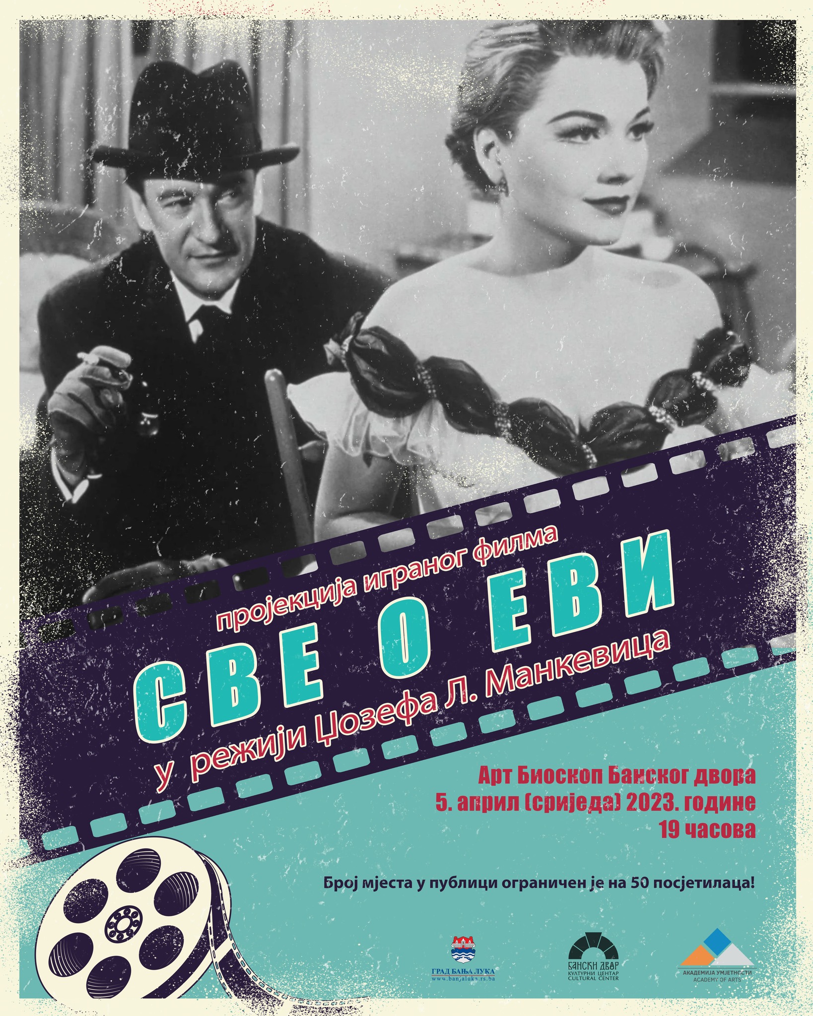 U Art bioskopu Kulturnog centra Banski dvor 5. aprila sa početkom od 19.00 lasova, biće održana projekcija igranog filma „Sve o Evi” u režiji Džozefa L. Mankevica.