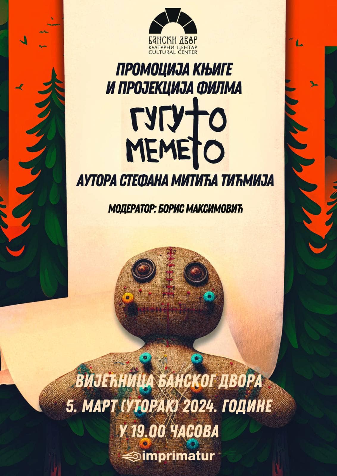 У Вијећници Банског двора 5. марта у 19.00 часова биће одржана промоција књиге и пројекција филма „Гугуто мемето“ аутора Стефана Митића Тићмија.