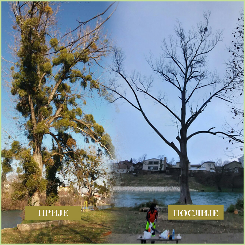 -Pomenuti radovi podrazumijevaju mehaničko uklanjanje zimzelenog grma poluparazita bijele imele koja preko korijena, koji razvija na granama i deblu domaćina, crpi vodu i mineralne materije i na taj način narušava vitalnost stabla. Takođe, vrši se uklanjanje suvih i oštećenih grana, u najvišoj mjeri poštujući prirodni habitus i važnu statiku samog stabla – pojasnili su iz resornog odjeljenja.