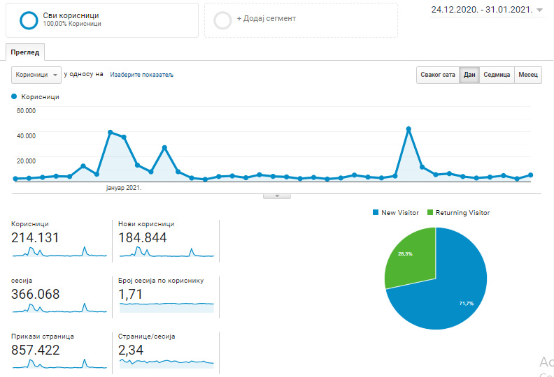 Prema podacima iz statistike posjeta, od 24.12.2020. zabilježeno je više od 857.000  pregleda, što je skoro pet puta više nego u januaru prošle godine, dok je u istom periodu 2019. do 2020. godine taj broj bio nešto veći od 172.000.