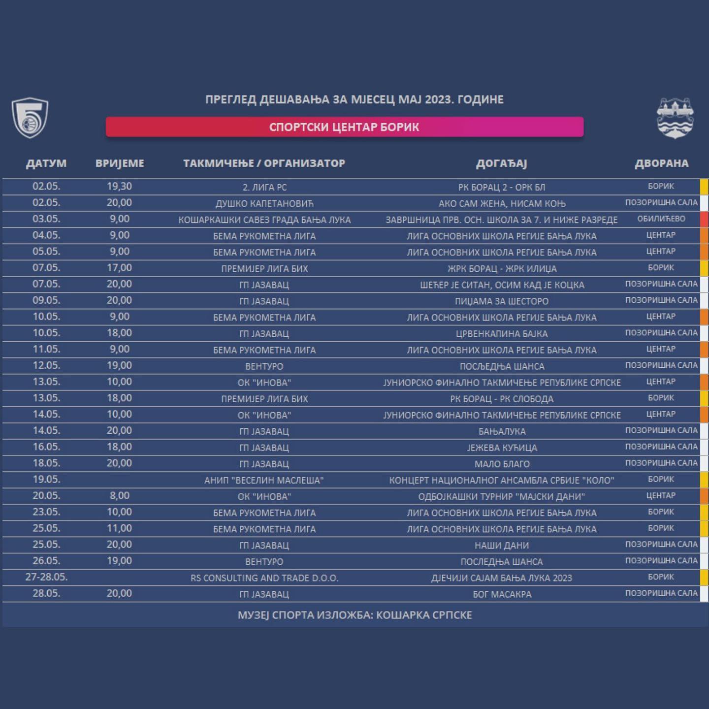 03.05.2023.03.05.2023.СЦ „Борик“: Погледајте програм за мај Спортски центар „Борик“ објавио је програм за мај у свим објектима у надлежности Центра. У наставку погледајте детаљније…