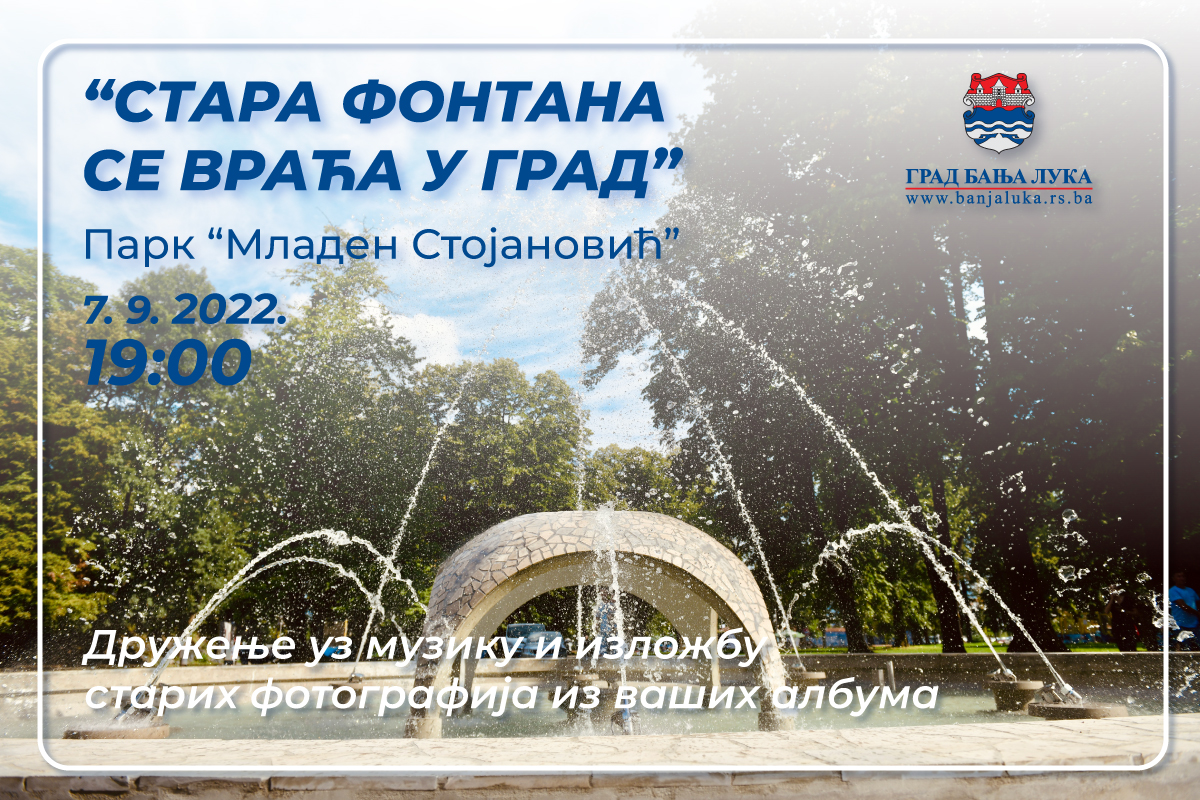 Чувена фонтана се враћа у наш град, а у част томе у сриједу, 7. септембра од 19.00 часова биће приређен пригодан програм и дружење у Парку „Младен Стојановић“.