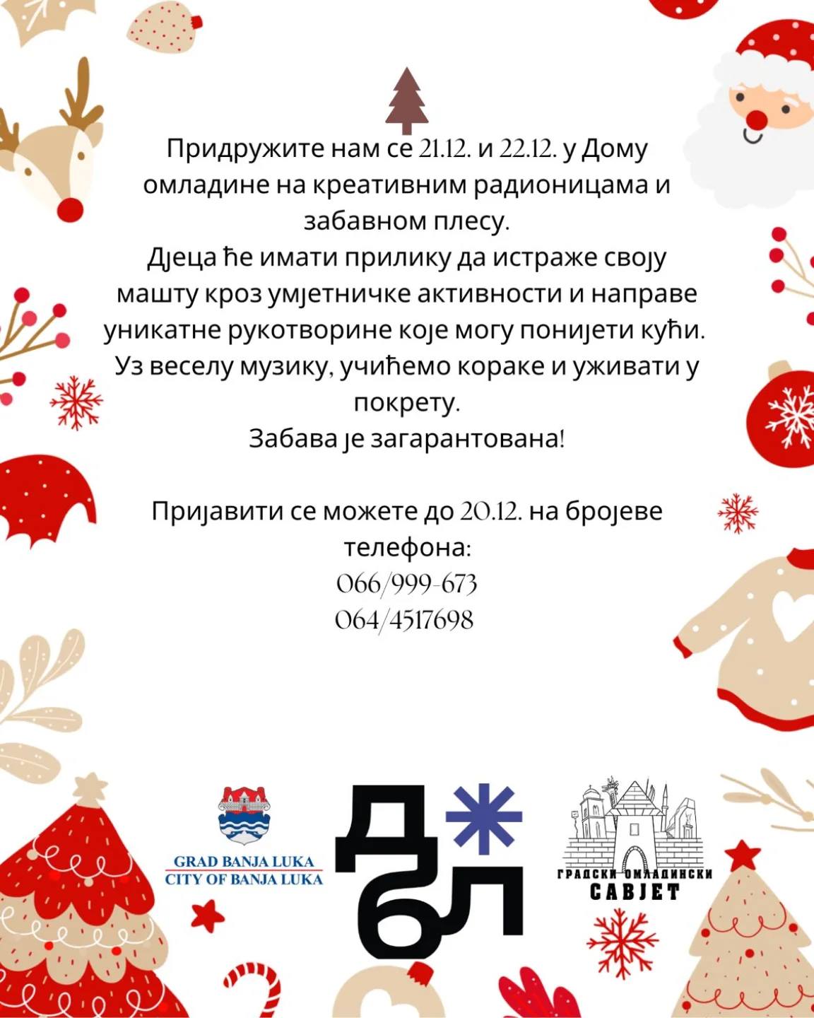 Gradski omladinski savjet u saradnji sa Gradom Banja Luka realizuje projekat „Svi za jednog i jedan za sve“ u Domu omladine 21. i 22. decembra.