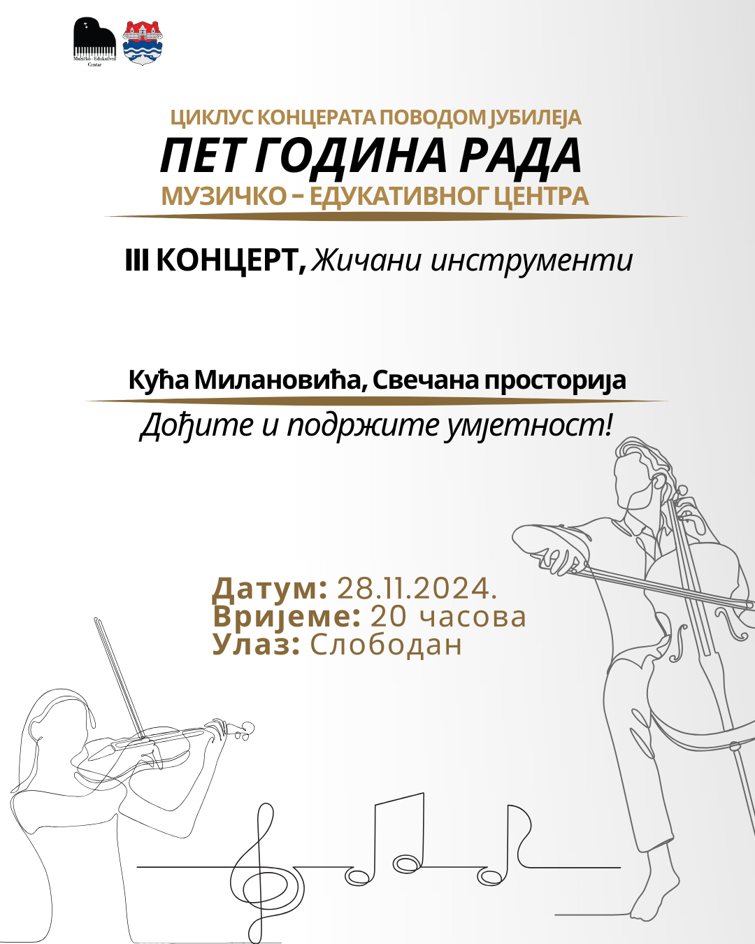 Поводом пет година постојања и рада Музичко-едукативног центра, у четвртак 28. новембра са почетком од 20:00 часова биће одржан трећи концерт у склопу циклуса концерата поводом овог јубилеја.