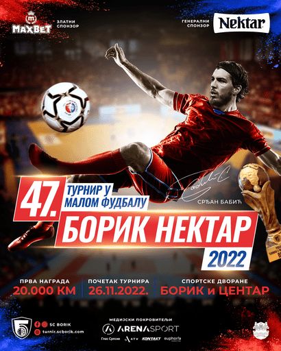 Традиционални турнир у малом фудбалу “Борик Нектар 2022” у организацији Спортског центра “Борик” и под покровитељством Града Бања Лука, почеће 26. новембра у СД „Борик“ и СД „Центар“. Финале је предвиђено за 25. децембар, док ће се жријеб екипа обавити 23. новембра у СД „Борик“. Пријаве за учешће екипа су у току.