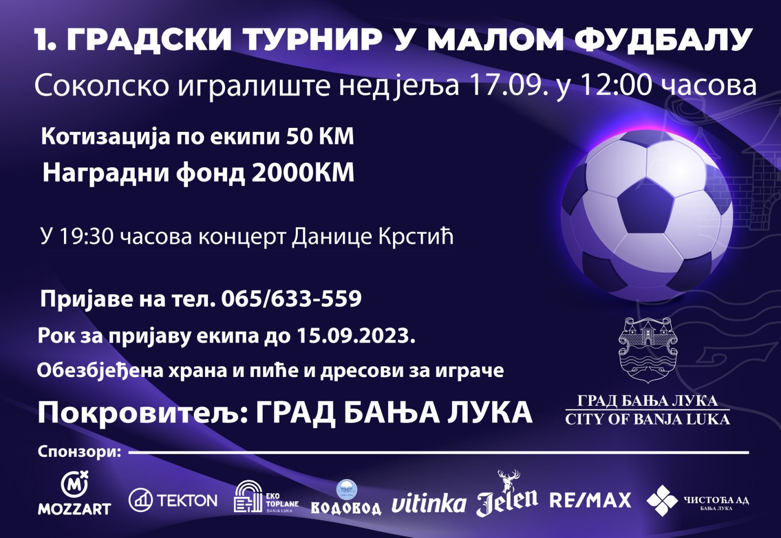Први градски турнир у малом фудбалу биће одржан у недјељу, 17. септембра на Соколском игралишту, са почетком од 12.00 часова.