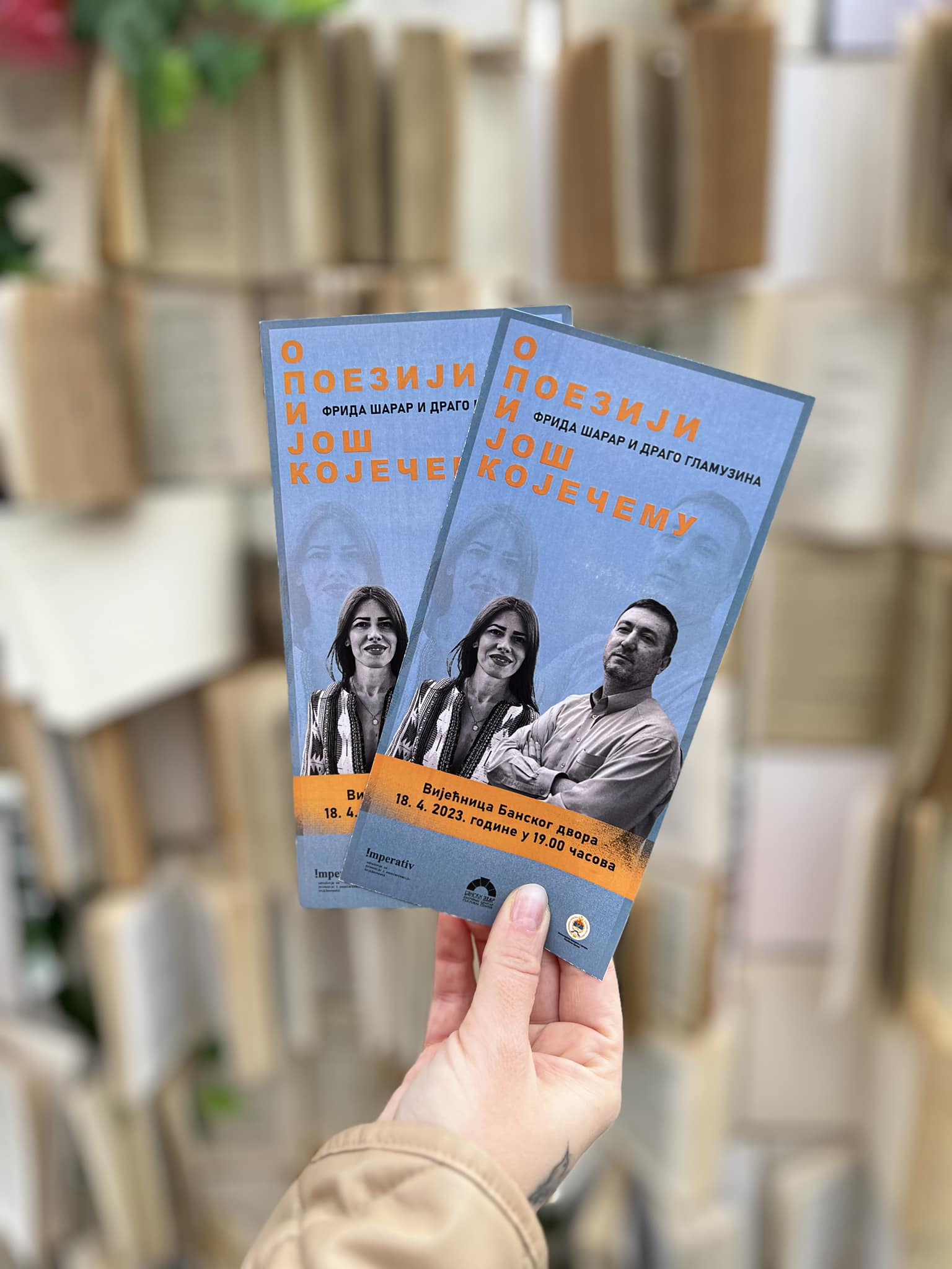 -Фрида и Драго ће у Вијећници Банског двора представити Фридину збирку поезије „Удаљена једну стварност одавде“ и Драгину збирку сабраних пјесама „Црни зец“. Немојте пропустити овај јединствен књижевни догађај! Видимо се 18.4. у 19:00 часова у Вијећници Банског двора – додају из „Императива“.