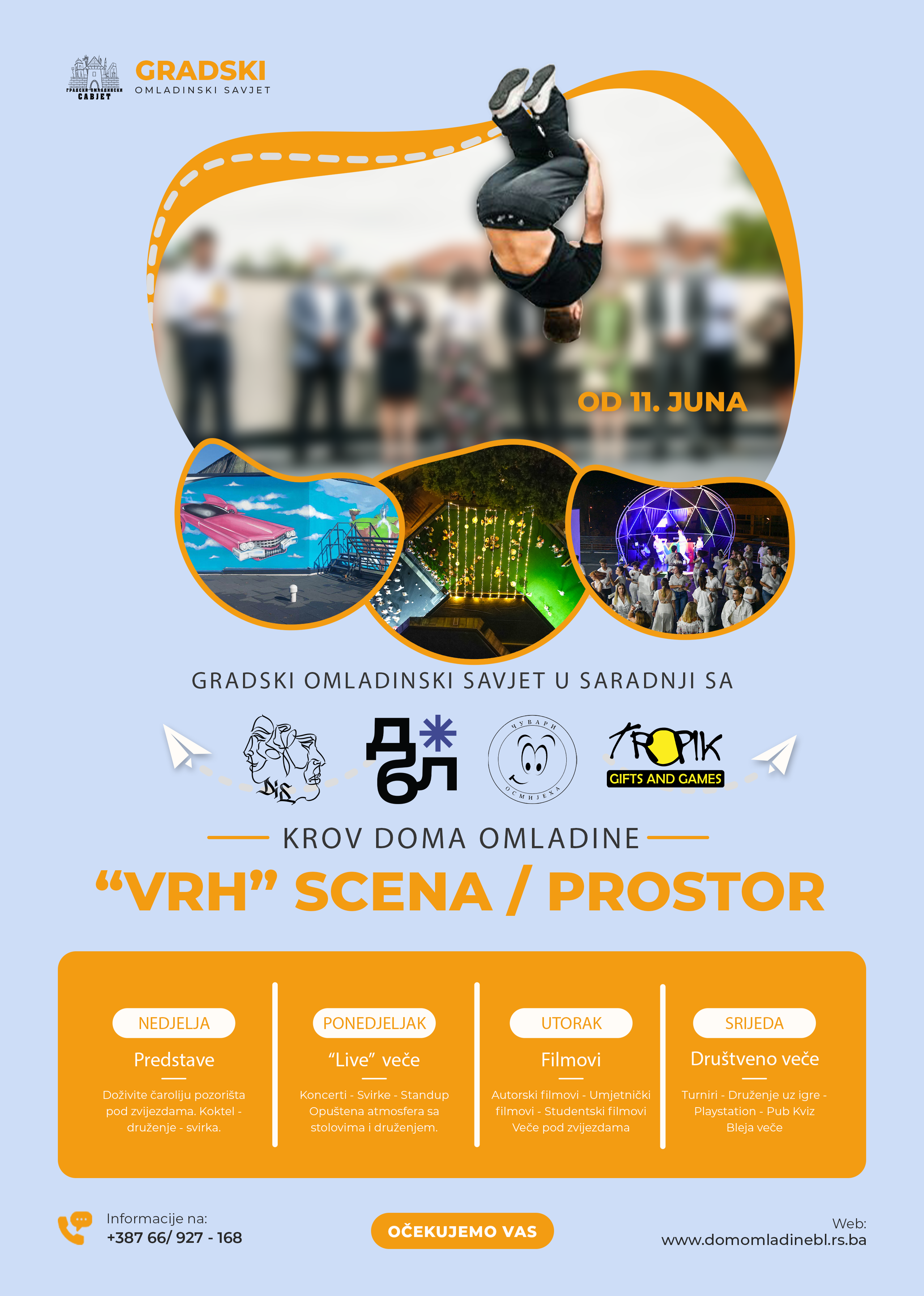 Како су навели из Градског омладинског савјета, који ове активности реализују у сарадњи са Домом омладине и другим партнерима – пројекат је посвећен анимирању младих, богаћењу садржаја Дома омладине, креирању и подстицању културног, забавног и едукативног садржаја за младе.