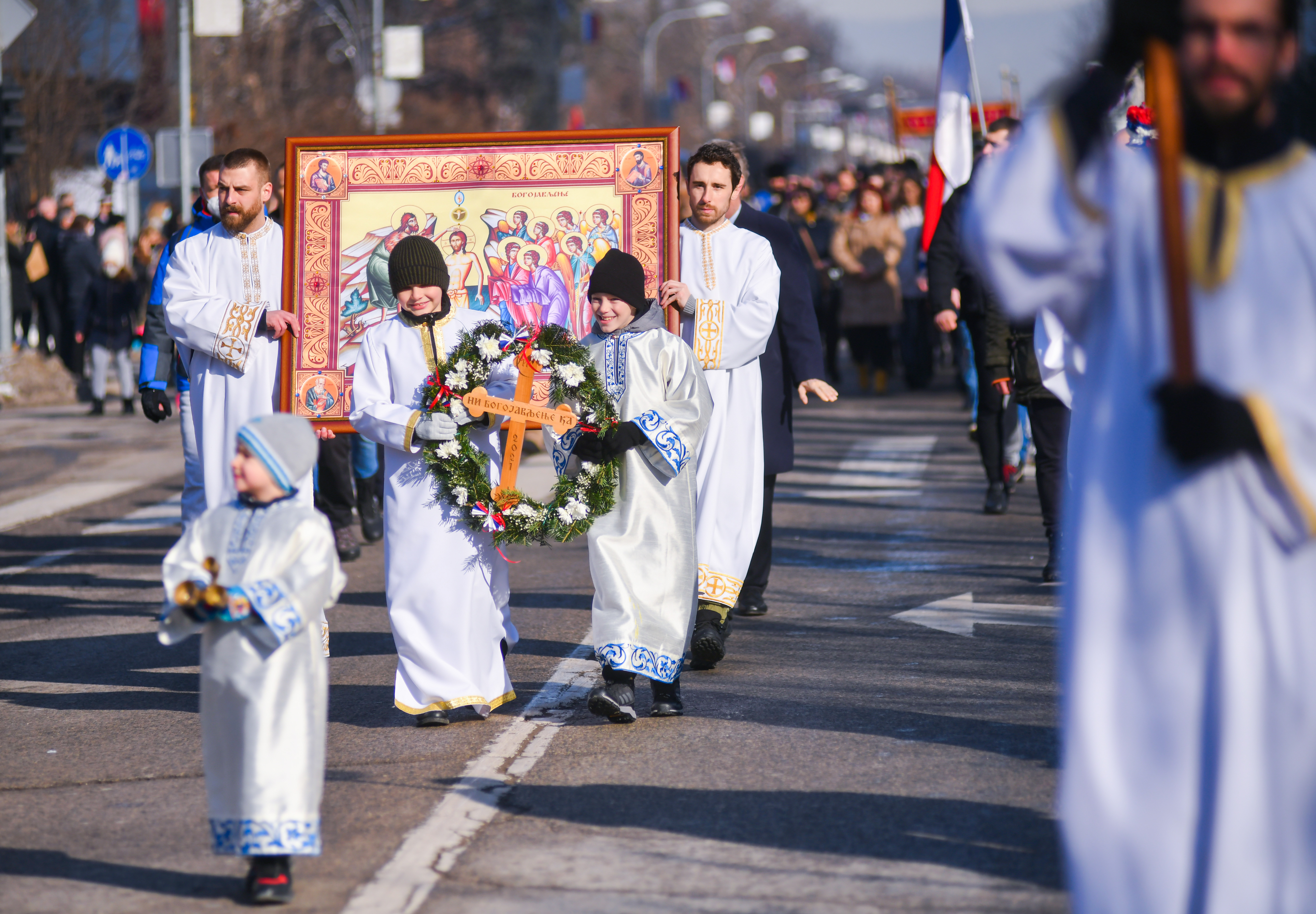 Одјељење за саобраћај обавјештава грађане да ће у петак, 19. јануара у времену од 11.00 до 14.00 часова, због одржавања Богојављанске литургије у оквиру које је предвиђено кретање свечане литије од Саборног храма Христа Спаситеља до Градског моста у Улици Патре доћи до обустављања саобраћаја и то у улицама: